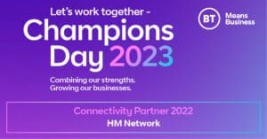 It is with great pleasure that we announce HM Network have been awarded BT Connectivity Partner 2022 at BT Champions Day 2023! This award recognises excellence in customer care, order management, process, and providing high-quality connectivity solutions to businesses across the UK.